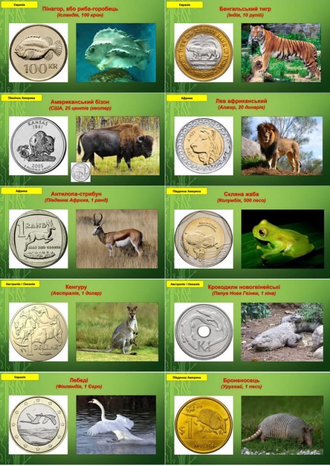 Діти зацікавлено вивчали тварин не з енциклопедій і довідників, а за допомогою монет, на яких зображено багатьох представників фауни.