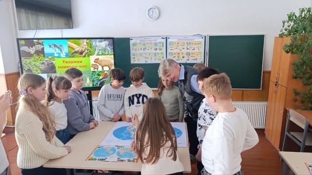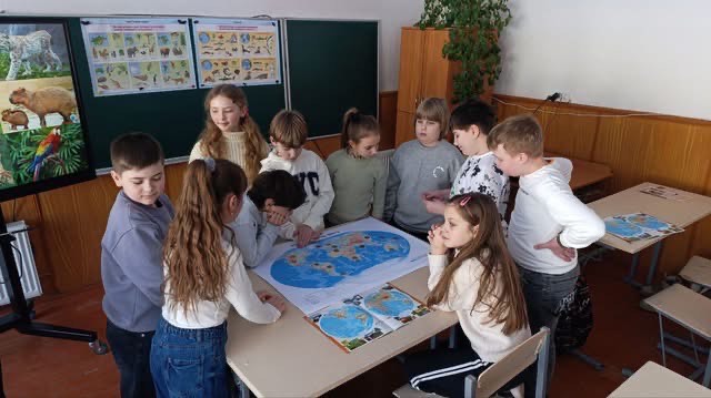 Протягом заняття діти «мандрували» всіма материками, дізнавалися цікаві факти про тварин, їхній спосіб життя, охорону та інші особливості.